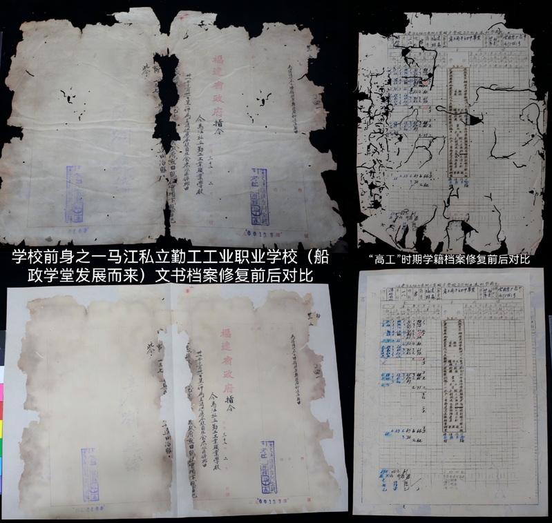学校档案保管条件简陋,且几经搬迁,历经烽火抗战时期。很多民国时期及新中国成立初期的档案老化、破损、虫蛀特别严重。特别是前身校之一省立高级航空机械商船学校的档案。1952年合并时移交给学校的档案,由于保管不善,档案泡水,未进行有效处理,流传至今已变成纸砖。此类档案如不进行修复处理,变成一堆碎末,历史印记将无迹可寻。